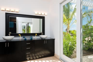 Escape to a modern luxury vacation rental at Plum Wild Villa, a spacious two-bedroom villa just a few steps from the world-famous white sands of Grace Bay Beach. This villa is the perfect choice for two couples or a family of 4, with six restaurants within a short walk and the island’s best snorkeling right in front of this fantastic villa! This luxury villa is outfitted with a tasteful modern flair and features a large kitchen, spacious living room with a large flat-screen TV, and a beautiful pool deck with space for sunning and BBQ.