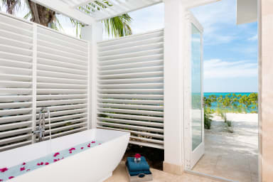 • Bedroom 1 (master) – Beach level, patio, outdoor bathtub and shower, king-size bed, en-suite bathroom, TV