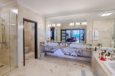 Impulse features an “upside-down” floor plan that maximizes the villa’s breathtaking ocean views from the upper level. The estate boasts six spacious bedrooms, each with a private en-suite bathroom, jacuzzi tub, shower stall, and double vanities. For wellness and relaxation, enjoy a full gym, complete with cardio machines, weight equipment, and a dry sauna for six.