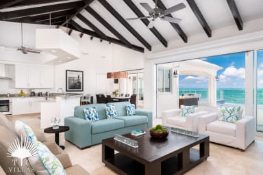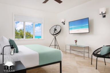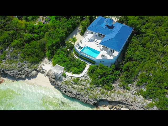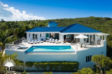 Modern 4BR oceanfront villa in Blue Mountain, featuring an infinity pool, hot tub, and panoramic views from 30 feet above sea level. With sleek open-concept design, oceanfront suites, and a private pocket beach plus nearby snorkeling, it’s perfect for families or groups seeking a stylish retreat close to Turtle Cove and Grace Bay.