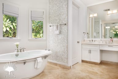 • A private neighborhood beach fully set up with beach chairs, umbrellas, a hammoc,k and a waterfall (besides the pocket beach on-premises) exists a short walk from the villa. Guests are welcome to enjoy this area.