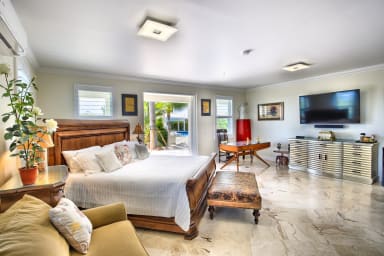 Vegas Suite – King bed, pool views, ensuite with jacuzzi and shower, mini-fridge, washer/dryer