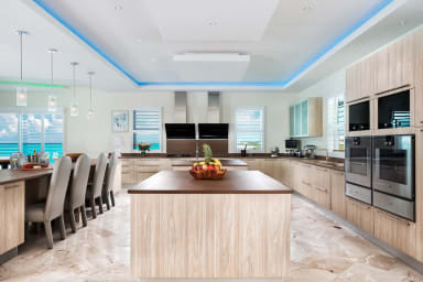 Impulse features an “upside-down” floor plan that maximizes the villa’s breathtaking ocean views from the upper level. The estate boasts six spacious bedrooms, each with a private en-suite bathroom, jacuzzi tub, shower stall, and double vanities. For wellness and relaxation, enjoy a full gym, complete with cardio machines, weight equipment, and a dry sauna for six.