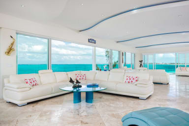 Impulse Beach Estate is a 20,000 sq. ft. luxury villa on Grace Bay Beach with seven suites, a rooftop sky lounge, private tennis court, gym, pool with swim-up bar, and a partial staff, it’s designed for families or groups seeking the ultimate Turks & Caicos retreat -just steps from snorkeling, dining, and the marina.