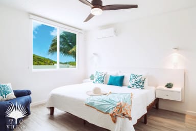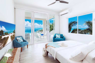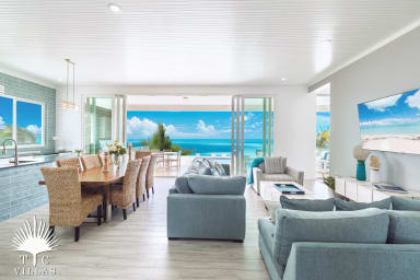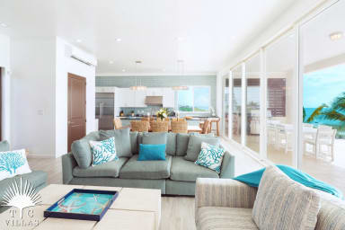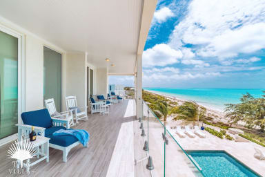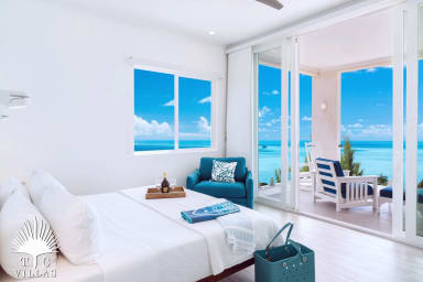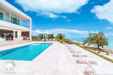 Sunrise Villa is a brand-new beachfront villa right on the sugar-white sands of Long Bay Beach. This 7BR home offers 11,500 sq ft of prime Caribbean real estate for up to 14 guests (16 with an added cost). Impeccably designed, this three-story estate offers guests ample space to call their own. It has a private pool, an open-concept kitchen, outdoor showers, a BBQ grilling station, generous poolside seating with shaded areas, and a separate oceanfront lower deck.