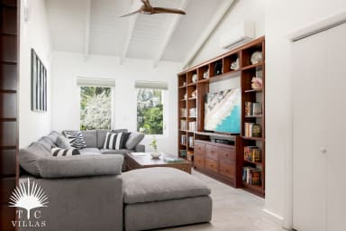This impeccably designed home provides comfortable spaces to relax and enjoy each other's company, offering six bedrooms, seven bathrooms, and multiple lounging areas. Amenities include table tennis, foosball, board games, kayaks, a BBQ grill, and a "Teen's Cave," among other unique spaces that delight kids and teens. Set directly across from the villa, Mangrove Cay is home to some of the country's most beautiful flora & fauna, so make sure to hop on your kayaks and discover Provo's exotic wildlife: birds, and lemon sharks, sting rays, and the only rock iguanas in the world!