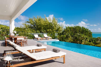 Just past the cozy outdoor living area with a private (saltwater) pool, a fire pit, and comfortable seating lies a picture-perfect beach strip that you may call your own. Let go of your worries, enjoy long walks along its 12 miles, float in the shallow waters, and partake in some of the many adventures nearby tour operators offer. The villa is equipped with everything you need for a luxurious & restful week. Nevertheless, within a short drive, you'll find the famous Provo Golf Club, bars & restaurants, Bird Rock Trail, convenience stores, motorized rentals, the Blue Haven Marina, and more. The latter houses most of the island's private boat charters and sunset cruises, which offer an extensive repertoire of fun things to do -you can even be picked up for a private tour right off the beach!