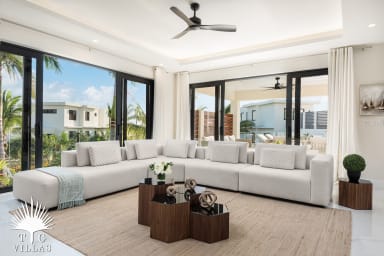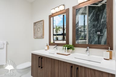 Villa Evie (4BR) is set one lot back from the water and offers guests a clean, modern, and luxurious space with plentiful natural light and elevated views over the bay. The open-concept design provides inviting water views from virtually anywhere in the house and creates a seamless flow between the different spaces. Once through the large wall-to-wall Arcadia doors, guests will be delighted with a practical and beautifully furnished spot to spend time together. Villa Evie features a BBQ grill, covered & uncovered sun decks, outdoor dining & lounging, a surround sound system, a private freshwater pool, water toys, and more.