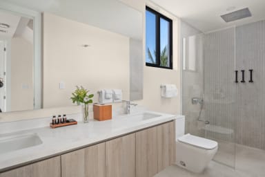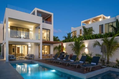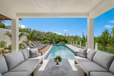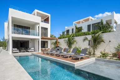 Modern 3BR villa in a gated community just steps from Grace Bay Beach. With a 40ft infinity pool, rooftop lounge with ocean views, and sleek indoor-outdoor design, it’s perfect for both entertaining and relaxation. Walk to restaurants and snorkeling, or simply enjoy alfresco dining, lush gardens, and the privacy of your own Caribbean retreat.