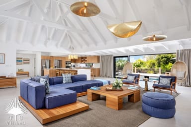 Beachfront retreat on Taylor Bay, known for calm waters and powdery sand. With seamless indoor-outdoor living, a private pool, chef’s kitchen, and alfresco dining, it’s perfect for families or groups seeking relaxation and luxury. Enjoy ocean views, lush gardens, and easy access to island adventures.