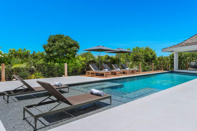 Indulge in the ultimate beachfront luxury at Six Turtles Villa, where the unique Taylor Bay Beach is right outside your door. This pristine beach boasts powdery white sand and crystal-clear turquoise waters, perfect for a tranquil escape.