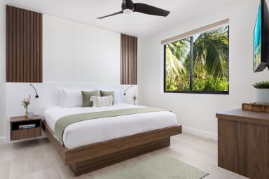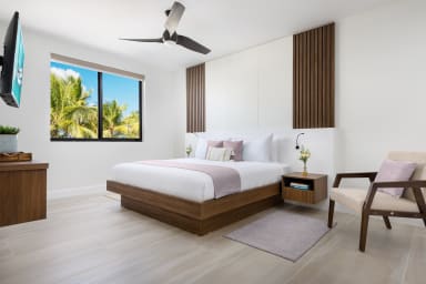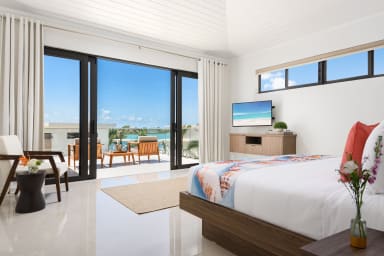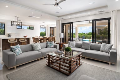 Villa Macy (4BR) is set one lot back from the water and offers guests a clean, modern, and luxurious space with plentiful natural light and elevated views over the bay. The open-concept design provides inviting water views from virtually anywhere in the house and creates a seamless flow between the different spaces. Once through the large wall-to-wall Arcadia doors, guests will be delighted with a practical and beautifully furnished spot to spend time together. Villa Macy features a BBQ grill, covered & uncovered sun decks, outdoor dining & lounging, a surround sound system, a private freshwater pool, water toys, and more.