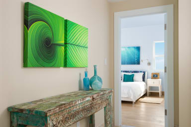 Villa Isla’s pool terrace offers sunny and shaded lounging areas with inviting deck furniture and a shallow end of the pool, perfect for cooling off. Walk past the pool deck and take the stairs down to the sugar-white sands of Long Bay Beach, a breezy crystal-clear paradise perfect for a dip or beach stroll. Relax on the oversized outdoor couch, or jump in the infinity pool to refresh while enjoying the view.  Soak in the hot tub with a cocktail at night while taking in the lovely star-filled sky; there’s no star gazing like that of a small island!